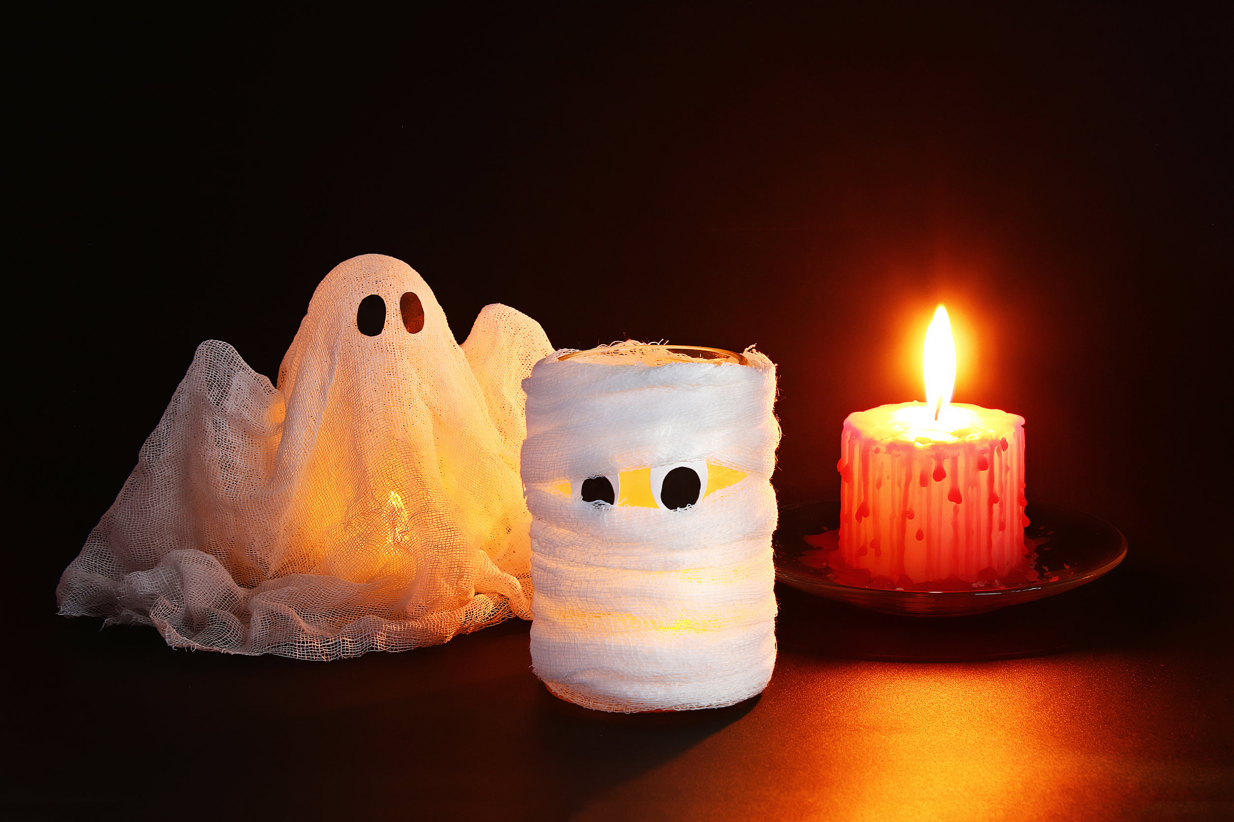 A halloween legjellegzetesebb dekortárgya minden bizonnyal a sütőtökből faragott lámpás. Az elkészítse nem bonyolult, viszont arra figyelj, hogy ha nincs kint elég hűvös, hamar megpuhulhat és tönkremehet az alkotásod. Beltérre ezért is jobb választás a befőttesüvegekből készült lámpás: ha hosszú gézcsíkokkal betekered az üvegeket, és ragasztasz rájuk szemeket, máris múmiává varázsolhatatod őket. Már csak egy teamécses kell, és garantált a rémisztő hangulat!