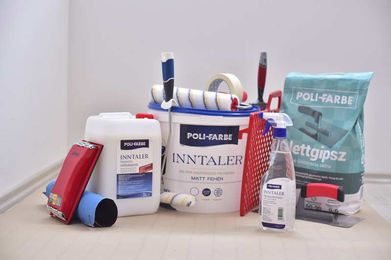 Festőtálca: megkönnyítheti a mélyalapozó és a festék felhordását. Különböző méretben kapható, válasszunk olyat, ami masszívabb anyagból készült, nem hajlik és kényelmes a kezünkben tartani.